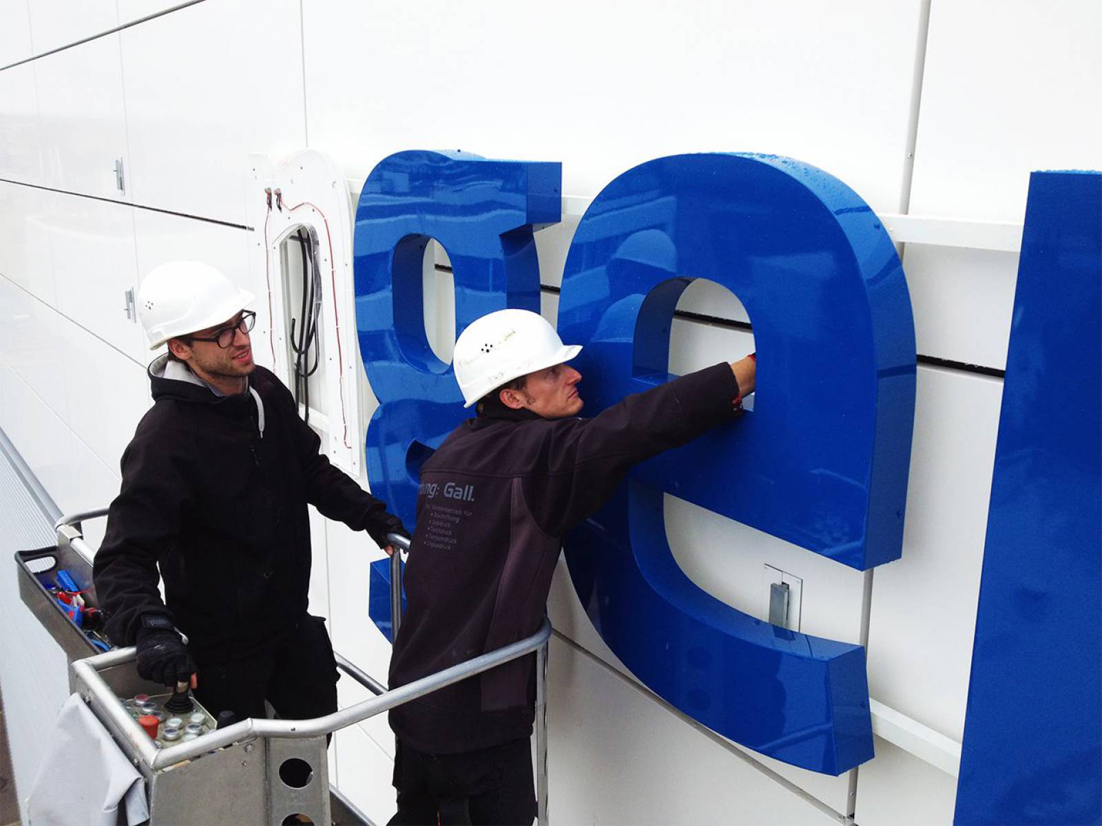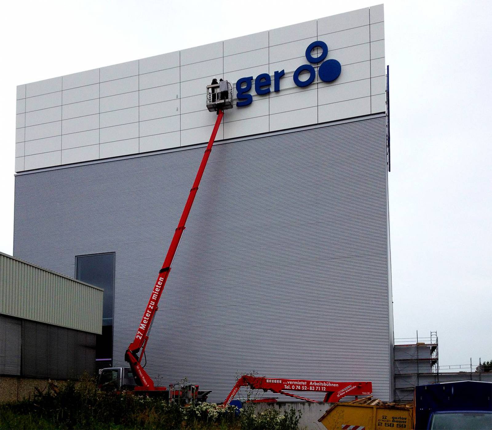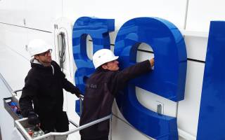 Konzeption, Dimensionierung und Gesamtplanung von 5 LED-Lichtwerbeanlagen im Profil 3P | Format: jew. 12 x 2 Meter | Oberteil und Zargen aus Aluminium, Unterteil aus Acrylglas | Wandmontage auf Alu-Unterkonstruktion auf Distanz zur hinterlüfteten Alu-Verbund Fassade | Indirekte Beleuchtung auf den Fassadenhintergrund mittels dimmbarer LED-Technik